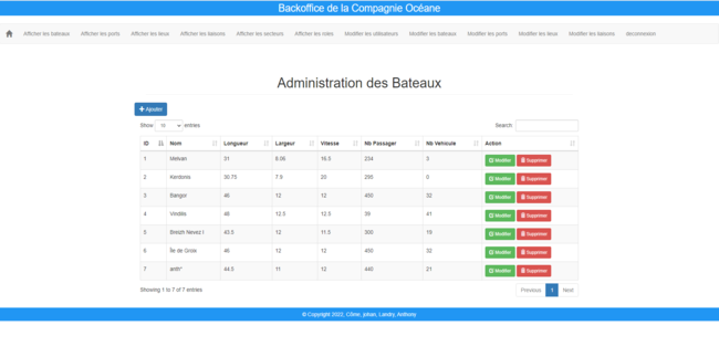 de bateaux Création de pages de gestion des bateaux et des traversées et mise en