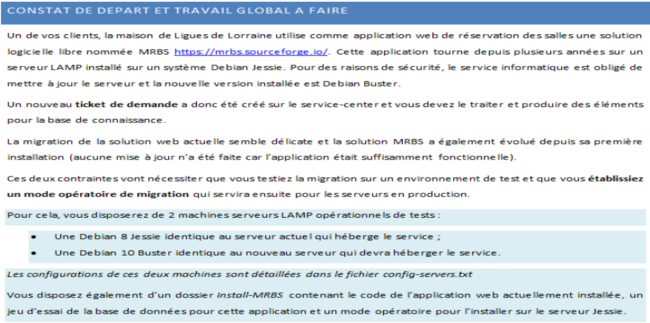application métier avec un changement de version et de systèmeMigration d'une application Web de réservation de salle MRBS d'un serveur