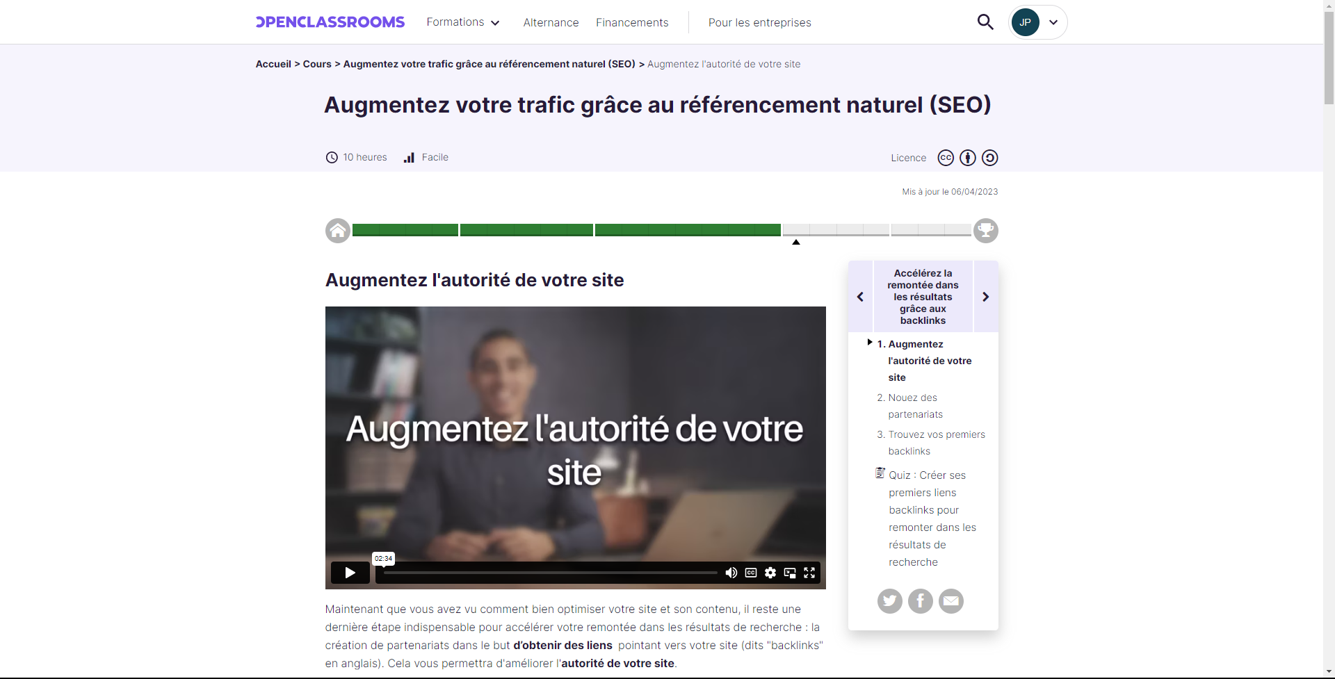 votre trafic grâce au référencement naturel" sur le site OpenClassroom et application sur des